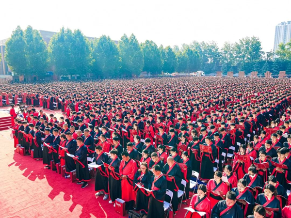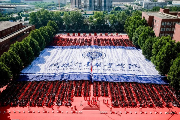 新石器时代的贾湖骨笛,高亢苍劲的笛声,穿越悠悠九千年的历史时空,引领起《匠心追梦》的铿锵旋律,14000余名洛科师生齐唱校歌,歌声响彻在校园上空,为今天的典礼画上圆满句号。