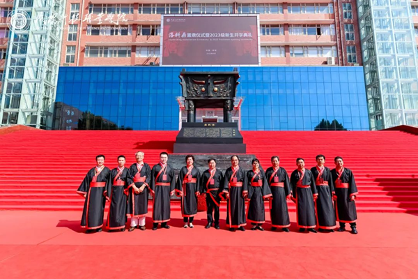 9月3日,海立方娱乐城 举行“洛科鼎”置鼎仪式暨2023级新生开学典礼以及河洛文化传承与大海立方娱乐城 园文化建设研讨会。河南省委教育工作委员会专职委员吕冰,洛阳市人民政府副市长任丽君,洛阳市政协副主席、九三学社洛阳市委员会主委王燕飞,新安县委书记王智,新安县委副书记、代县长崔占科,中国民办教育协会副会长、第十四届全国政协委员、民进中央委员、民进云南省委副主委、中国新高教集团董事长李孝轩,校党委书记刘茂钦,党委副书记、校长刘丽彬博士以及近百名专家学者光临现场,与14000余名身着汉服的洛科师生共同出席活动。仪式由党委副书记、副校长牛耀堂主持。
