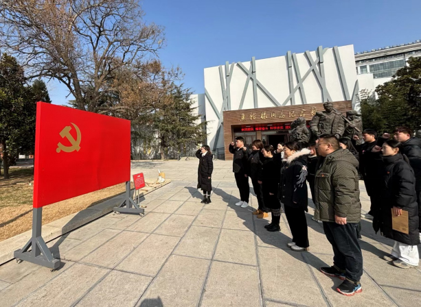参观结束后,面对鲜红的中国共产党党旗,在张衡书院党总支书记赵文静的带领下,全体党员在党旗前重温入党誓词,从入党誓词中体悟中国共产党人的初心使命,铮铮誓言铿锵有力,久久回荡。