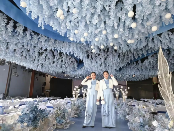 雷梦玲(图左)与同学共同在青岛蓝谷国际酒店工作