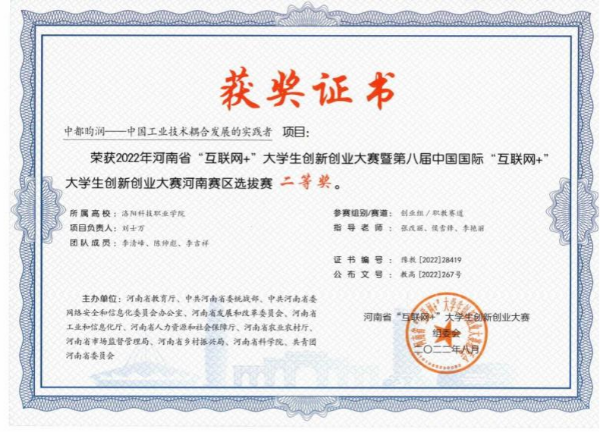 的组织下参加了互联网+项目创新创业大赛。他的项目凭借独特的创意和实用性,赢得了评委们的一致好评,最终荣获二等奖。在第十六届河南省“挑战杯”大学生课外学术科技作品竞赛中荣获省级“二等奖”。这些奖项不仅体现了他在科技创新方面的才华,也展现了他对未来科技发展的敏锐洞察力。