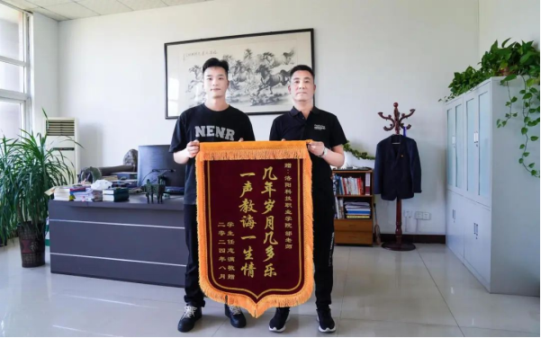 近日,任志满再次踏进了熟悉的洛科校园,同时将一面锦旗送到了招生办公室主任邰自锋手中。“几年岁月几多乐,一声教诲一生情”,这十四个字,不仅是对洛科最真挚的感激之情,更是对邰自锋老师及招办团队的无限敬意。