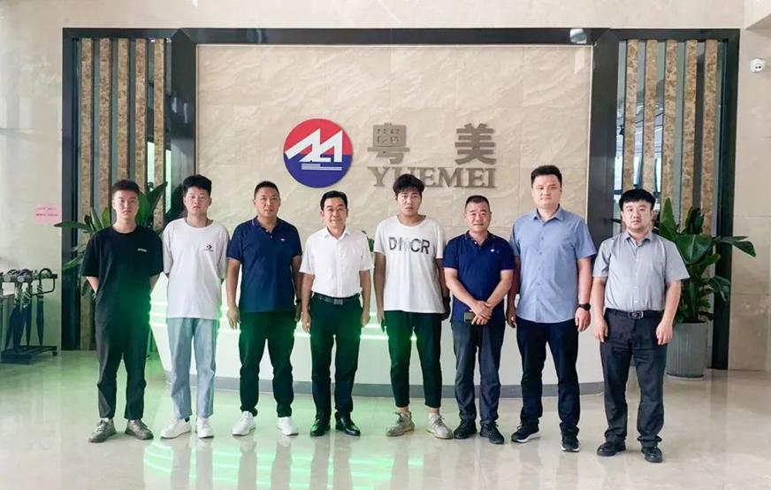 考察团一行。朱新亮详细介绍了粤美公司的成立历史、所产产品、技术攻研、创新成果、客户群体等方面的情况。
