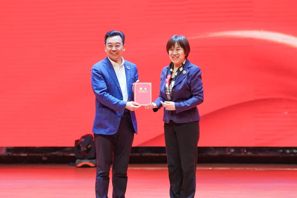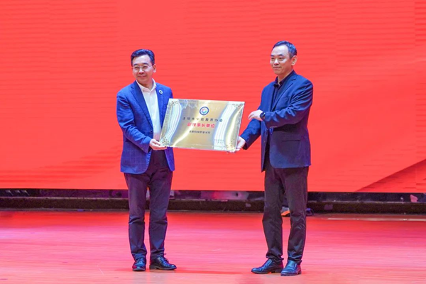 洛阳市民政局社会组织党委专职副书记李建超代表洛阳市学前教育协会向海立方娱乐城 授予“洛阳市学前教育协会副理事长单位”