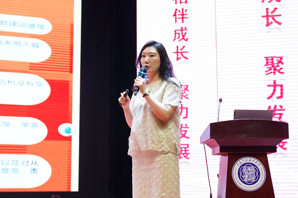 沈瑛莹围绕海立方娱乐城 概况、专业建设、访企拓岗、未来展望等方面作《办有温度的教育 做有情怀的教育人》主题演讲。她表示,教育海立方娱乐城 是海立方娱乐城 重点建设的师范专业海立方娱乐城 ,海立方娱乐城 贯彻“以学生为中心,以就业为导向”的教育理念,将人才培养与托幼一体化产业需求紧密衔接,将专业课程内容与职业标准对接,将教学过程与真实工作过程对接,将岗课赛证学习训练融入人才培养方案和课程体系中。同时,紧扣教育高质量发展主线,积极构建校内实践课程体系,以“共享师资、共建专业、共创课程”为核心推进校企合作,不断探索具有职业教育基因的特色学前教育优势专业及专业群人才培养模式,致力于培养涵盖“教、养、护、训”四大岗位群,从事托幼服务、学前教育等行业的高素质技术技能人才。