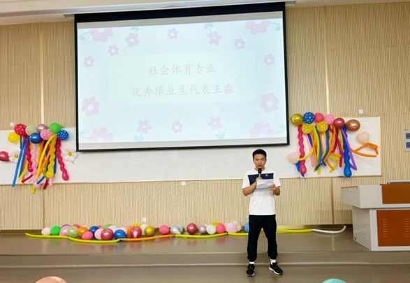 随后,婴幼儿托育服务与管理专业学生代表孙艳、社会体育专业学生代表王淼分别发言,分享了自己在大学的学习收获,表达了对母校、教师、同学和家人的感激之情,同时也展望自己未来的职业规划和人生目标,勉励大家做新时代有理想、有担当的奋斗者。