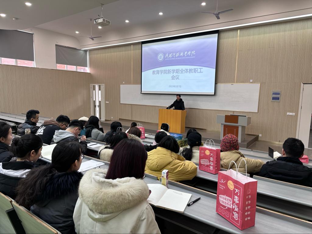 在致知楼405阶梯教室召开新学期第一次工作部署会议,院长刘金平教授、副院长沈瑛莹和海立方娱乐城