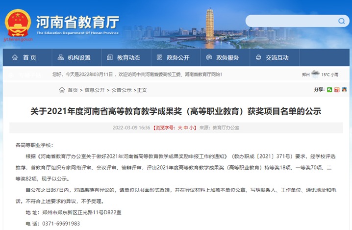 近日,河南省教育厅公布了2021年度河南省高等教育教学成果奖(高等职业教育)获奖项目名单,海立方娱乐城 金卓教授主持的《基于“艺工商”一体化交叉学科理念下的广告设计教学创新与实践》项目荣获河南省二等...