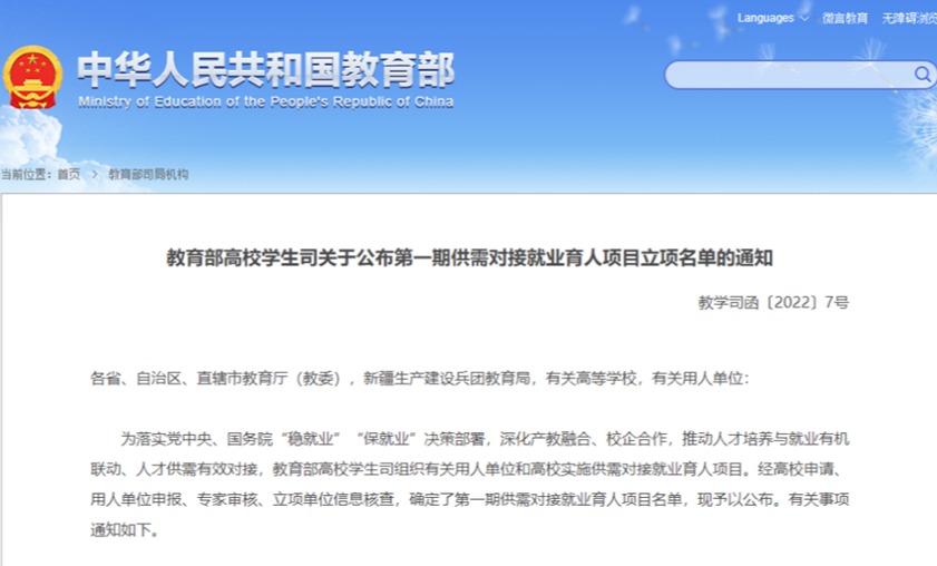 4月6日,教育部发布了《教育部高校学生司关于公布第一期供需对接就业育人项目立项名单的通知》(教学司函〔2022〕7号),海立方娱乐城 共有4个项目获得第一期供需对接就业育人项目立项。该项目是为落实党中央...