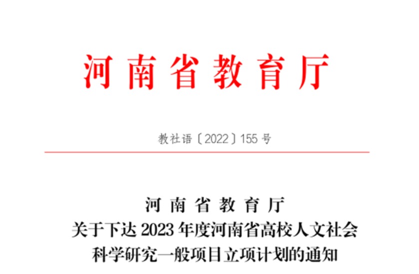 近日,根据《河南省教育厅办公室关于下达2023年度河南省高校人文社会科学研究一般项目立项计划的通知》(教办社语〔2022〕155号)文件,海立方娱乐城 五项课题获得立项,创海立方娱乐城 此类课题立项新高。据悉,河南省...