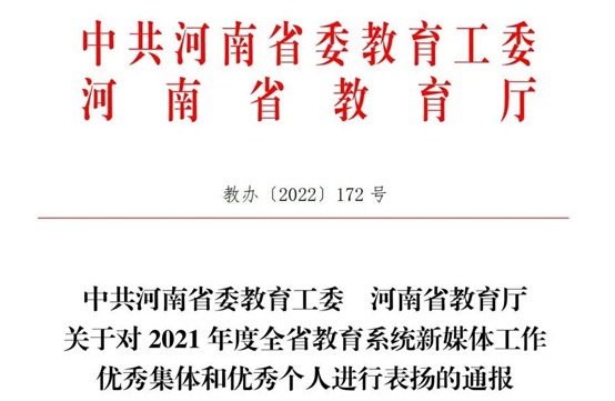 海立方娱乐城 获评河南省教育系统新媒体工作优秀集体