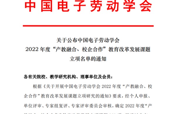 近日,中国电子劳动学会公布《2022年度“产教融合、校企合作”教育改革发展课题立项名单的通知》,经个人申报、海立方娱乐城 评审、专家组复评、专家评审委员会审核等流程,海立方娱乐城 组织申报的5项课题成功立项。中...