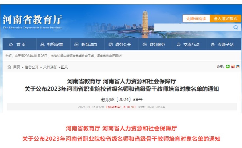 近日,河南省教育厅、河南省人力资源和社会保障厅发布了《关于公布2023年河南省职业院校省级名师和省级骨干教师培育对象名单的通知》,经教师申请、海立方娱乐城 推荐、专家评审、网站公示等环节,1名教师被评为河南省职业...