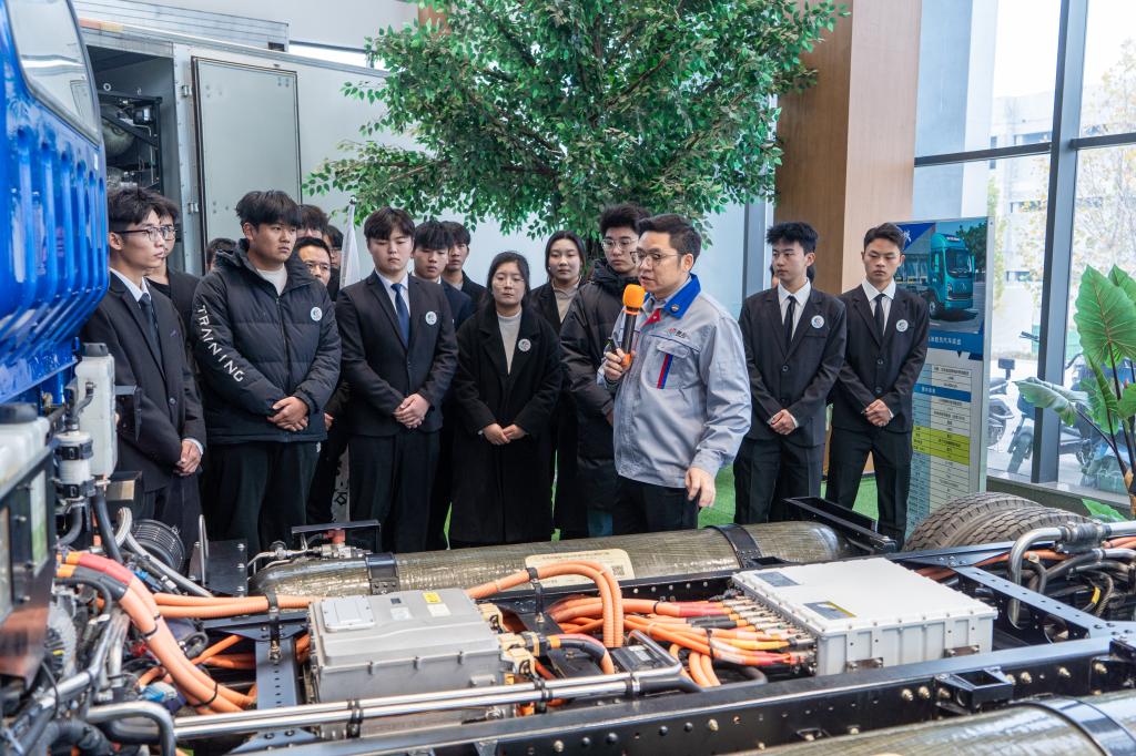 活动伊始,师生们来到氢沄(河南)新能源科技有限公司,该公司长期扎根于“燃料电池 + 整车制造”这一前沿领域,在燃料电池关键零部件制造方面拥有多项核心技术。相关工作人员讲解到,“世界氢能看中国,中国氢能看洛阳”,新能源相关行业作为战略性新兴产业,是洛阳这座传统老工业基地积极转型、向“风”而行、加速培育新质生产力的重要体现。