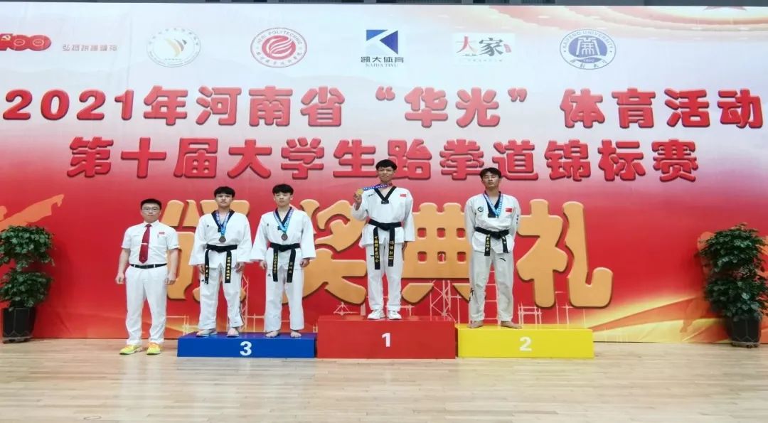 近日,由河南省教育厅、河南省学生体育总会跆拳道协会主办的“2021年河南省第十届大学生跆拳道锦标赛”落下帷幕。比赛吸引了全省44所高校参加,经五天的激烈角逐,海立方娱乐城 选派的队员冯焕毅、王星涛分别取得男子甲组54kg冠军及男子甲组58kg季军的好成绩。