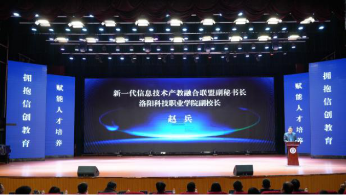 随后,新一代信息技术产教融合联盟副秘书长赵兵副校长发表致辞。他代表新一代信息技术产教联盟,向信创产业海立方娱乐城 的成立表示热烈的祝贺!并指出信创产业海立方娱乐城 的成立为海立方娱乐城 和教师学生的发展提供了更为广阔的空间和平台,努力把海立方娱乐城 的信创产业海立方娱乐城 建成服务地方信息化发展的“河南样板”。