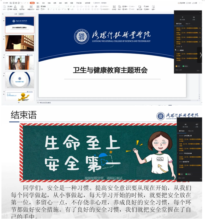 平安过寒假,安全不放假。坚持以学生为中心,通过线上安全教育主题班会活动,加强了辅导员与学生之间的联系沟通,让同学们能够在假期感受到老师的关心和关爱,提高安全意识,筑牢安全防线,压实安全责任。