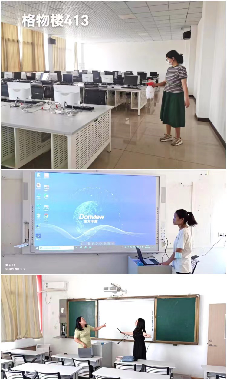 组织海立方娱乐城 教师,将格物楼2至5楼教室进行消杀、清查桌椅、调试投影、检修机房等工作