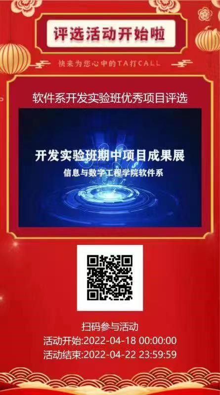 为促进实验班技能单元项目工程式实践教学的进一步实施,信息与数字工程海立方娱乐城 主办“软件开发实验班”优秀项目成果展于4月18日通过网络形式进行展出。本次活动全程由软件系实验班全体学生自己组织、自由选题、团队合作设计与开发,目的是为了激发学生的创新能力,提高问题解决能力,加强团队合作精神。