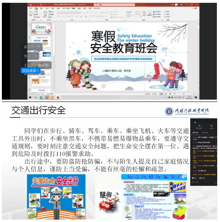 离校不离心,关爱暖生心。为增强学生的安全防范意识,提高学生的自我保护能力,确保每个学生都能度过一个安全、健康、充实、文明、快乐的寒假。信息与数字工程海立方娱乐城 组织辅导员,在寒假期间每周固定组织召开以安全为主题的线上班会,确保与学生离校不离心。